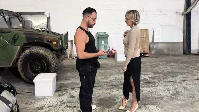 У женщины барахлит машина и ей нужен срочный осмотр, поэтому она приезжает на СТО. Там ее встречает занятый механик, у которого и так дел по горло, но дамочка все равно настаивает на быстром ремонте. Она готова отдать всю себя из-за спешки и раздевается, приставая к члену механика. Ему по вкусу такое решение проблем, поэтому чувак трахает в рот татуированную бабу, которая замужем, а потом на полу имеет в пилотку.