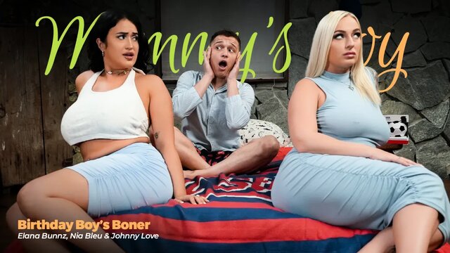 Молодой парень только успел проснуться, как к нему в спальню завалились две грудастые подруги, желающие поздравить его с Днем Рождения. У них был особенный план, ведь красотки договорились о ЖМЖ сексе и первым делом вдвоем начали сосать твердый пенис. Чувак не растерялся, ведь ему было безумно приятно от горячих ласк и начал трахать сучек по очереди. Их киски до упора заполнялись пенисом и становились очень мокрыми.